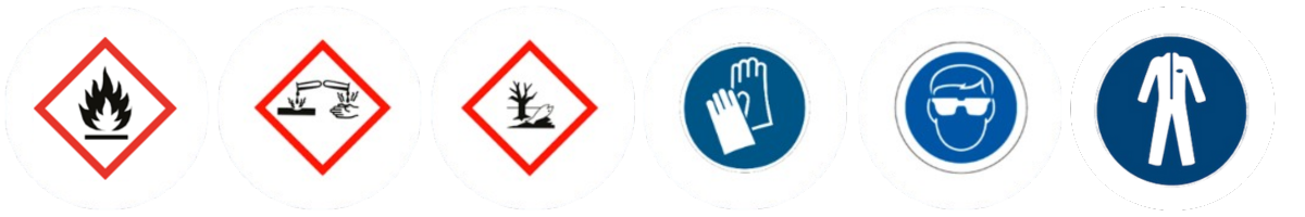 Pictogramas del SGA: Corrosivo – provoca quemaduras en la piel/daños oculares. Medio ambiente – tóxico para la vida acuática.